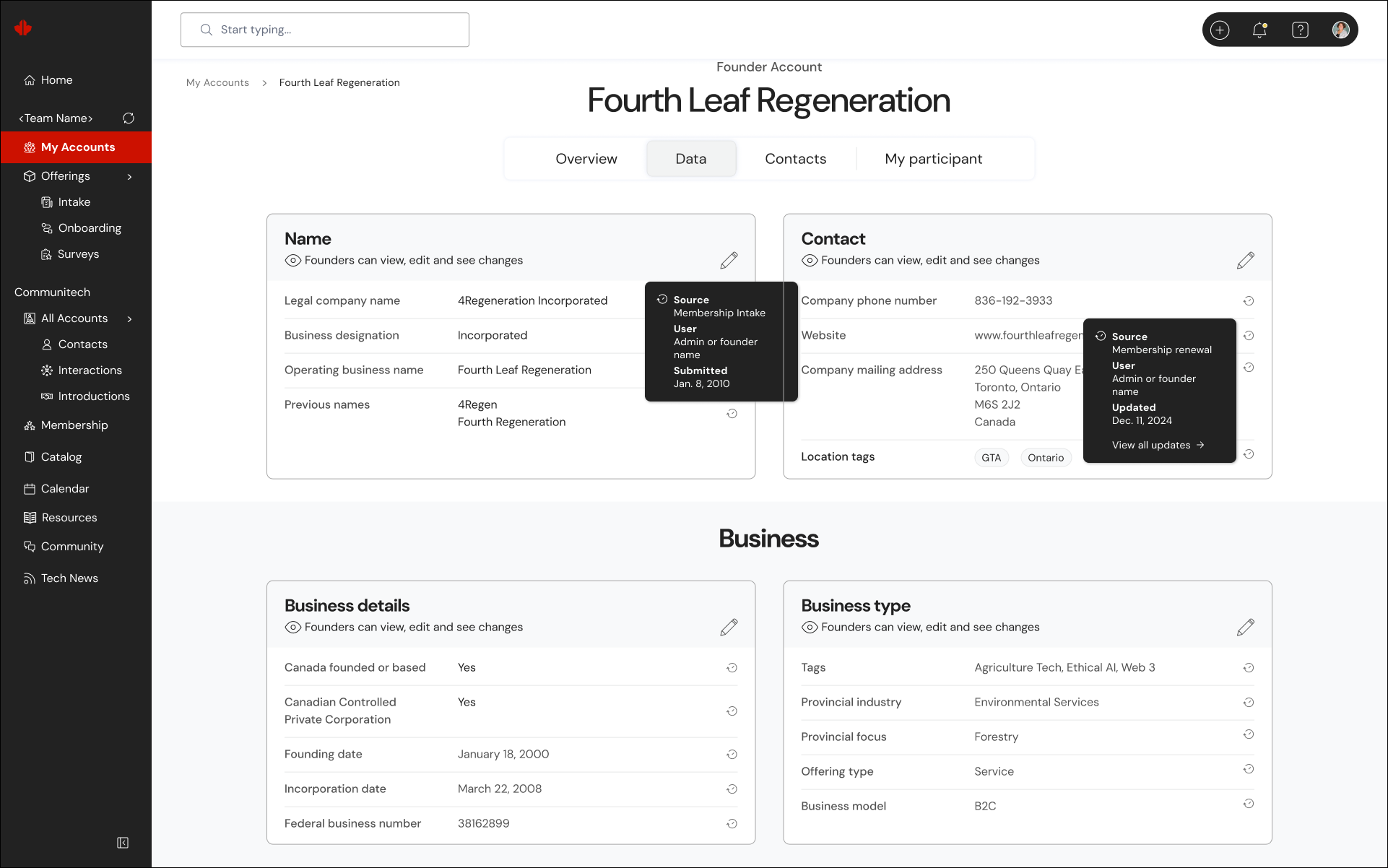 Streamlining data entry was both a UX and an organizational win. Aligning the CRM with real admin workflows will help Communitech reclaim valuable time, data quality and eliminate reliance on licening costs - all while restoring trust in the system.
